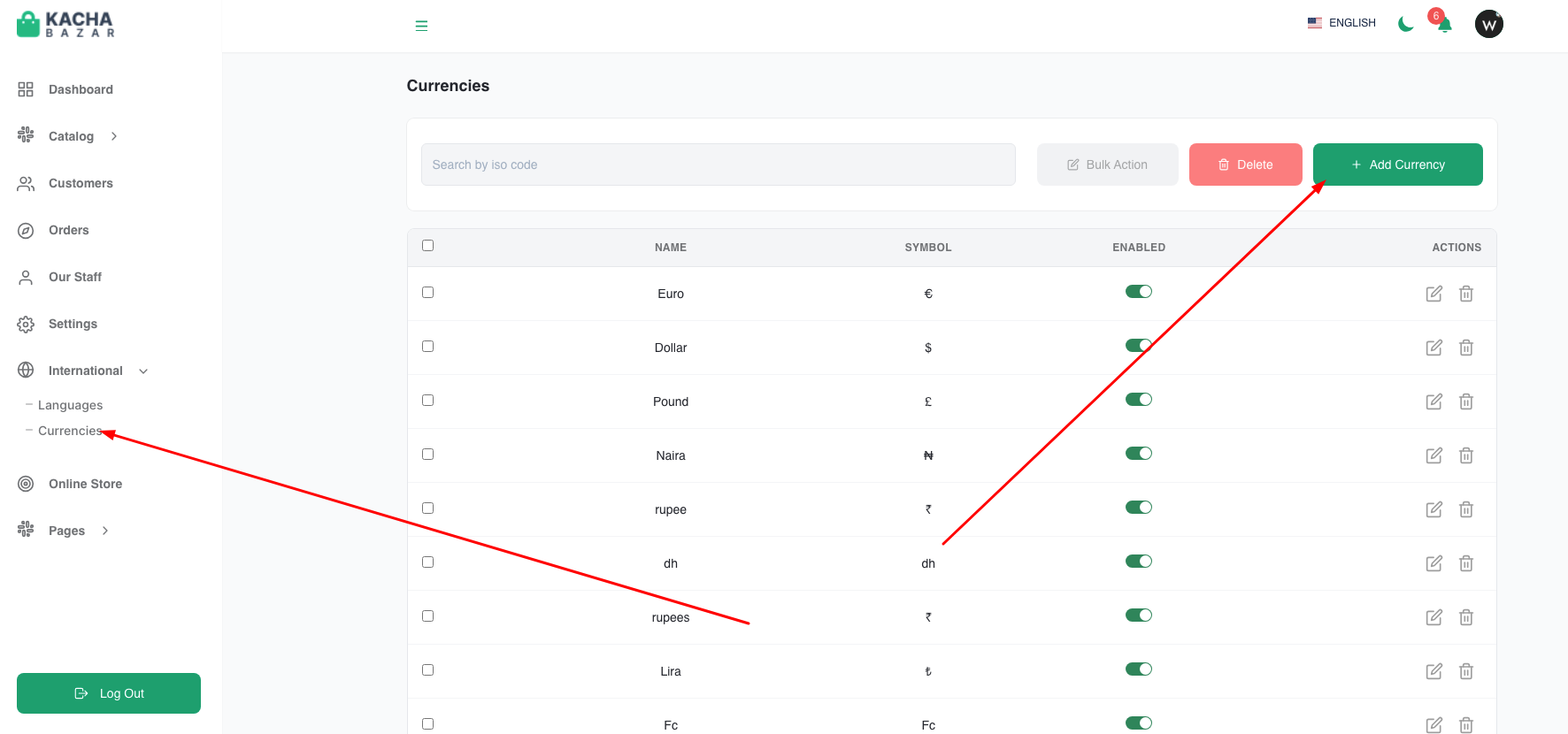 You can add currency from here with all necessary information. This currency will shown in setting currency select option.