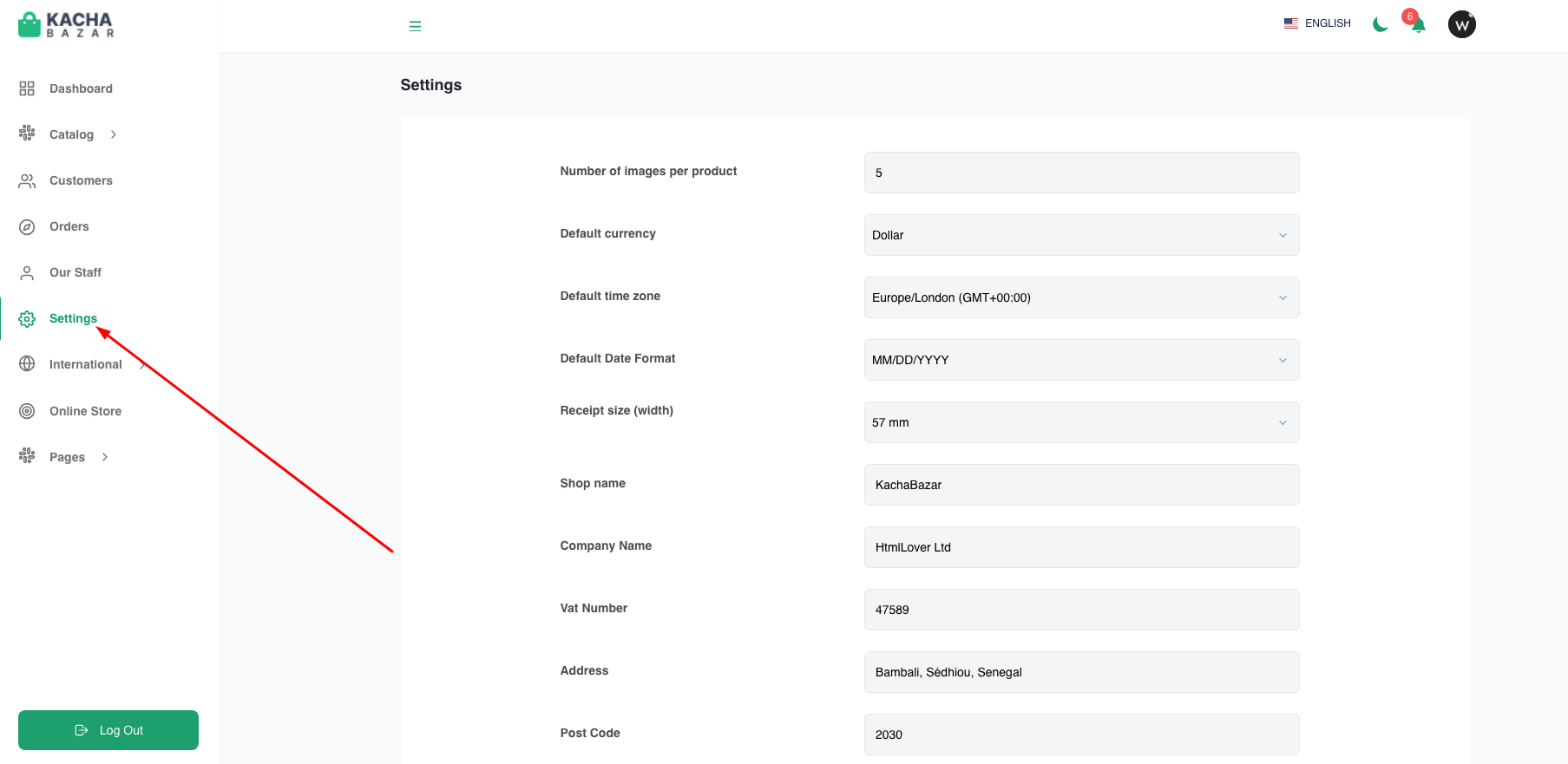 You can add setting from here with all necessary information. all setting data will apply in admin and store. like currency, data format, time zone. And other information will shown in customer order invoice.