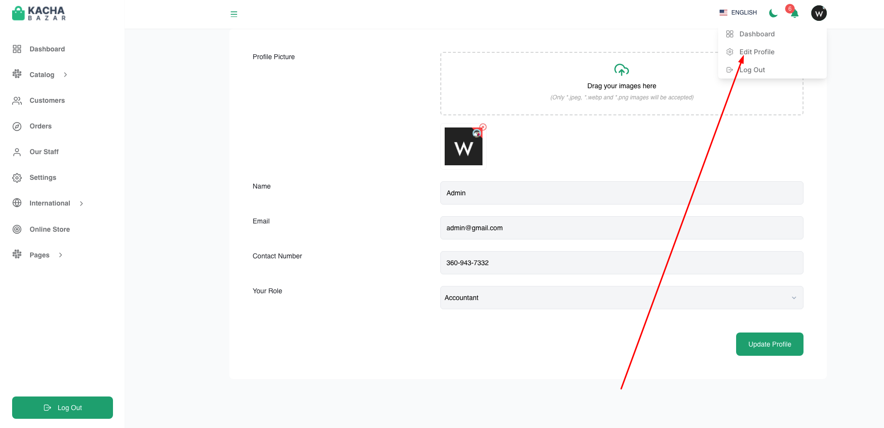 You can update admin/staff info from here with all necessary information. Also can be update from staff drawer.